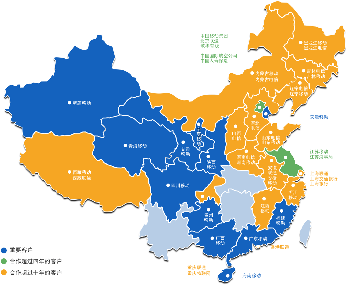 2005年开始进行全国扩张,占据中国电信运营商企业信息化63%的市场份额,客户遍布全国,并实现本地化服务;